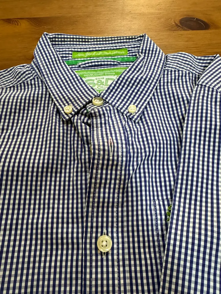 I have two men's shirts from Superdry in size S-M. They are both in excellent condition and have been gently used. The first shirt features a classic check pattern in navy and white, while the second is a solid color. Perfect for casual or semi-formal occasions, these shirts are comfortable and stylish.