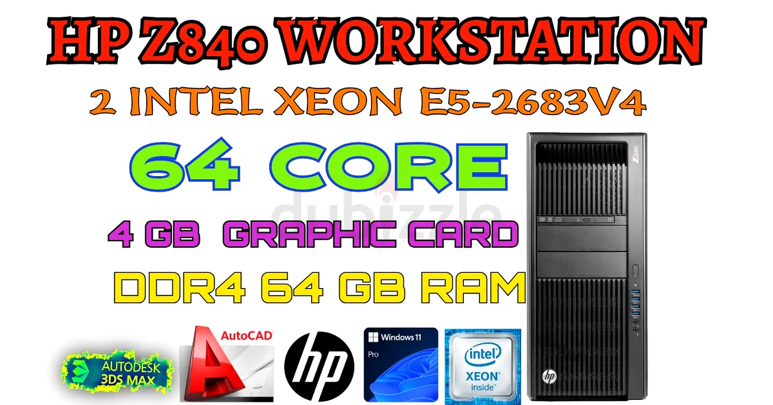 HP Z840 WORKSTATION-2 Intel XEON E5-2683V4 CPU-64GB RAM-4GB GRAPHIC CARD-512GB NVME SSD+1TB HDD-WIN