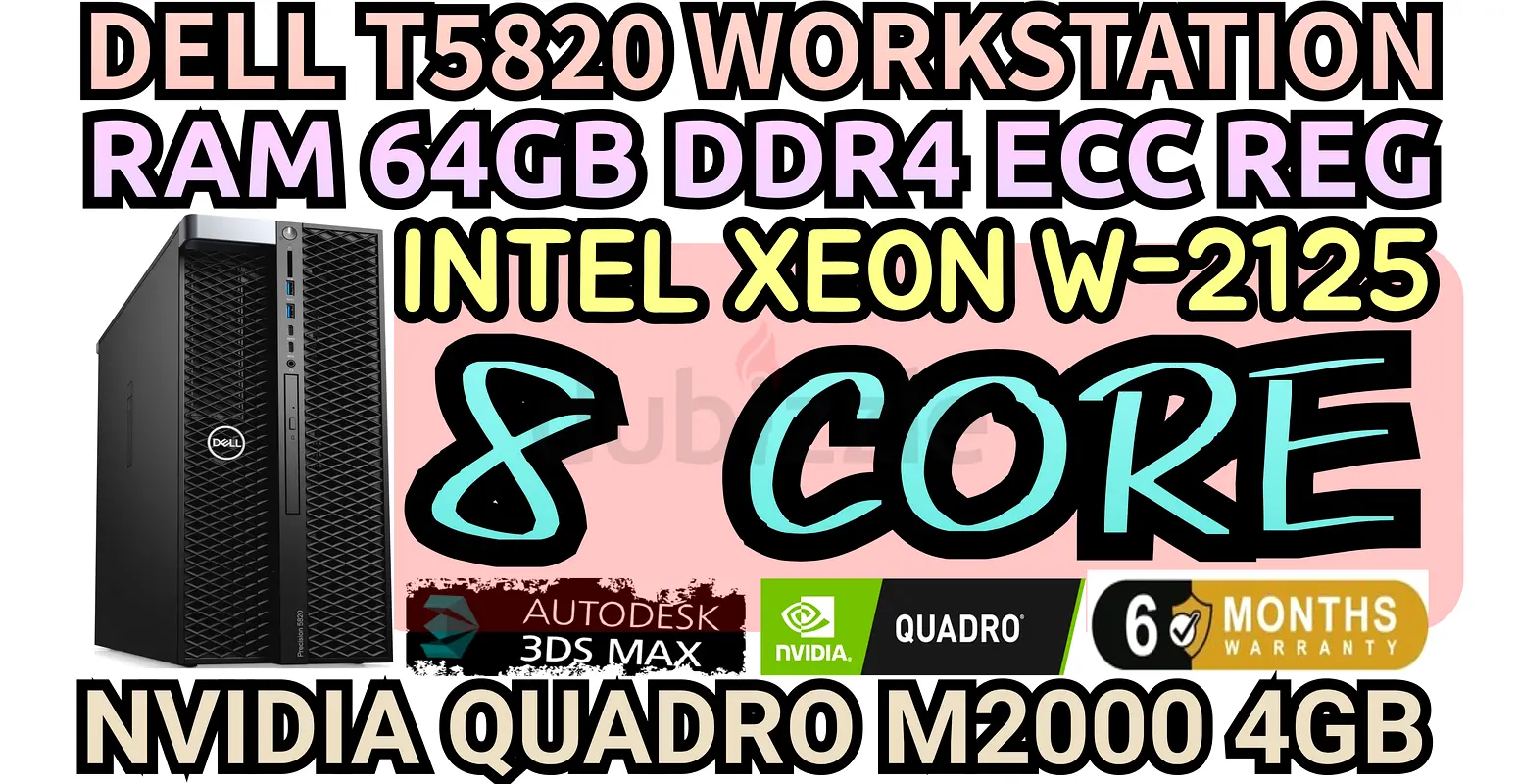 DELL T5820 WORKSTATION NVIDIA QUADRO M2000 4GB DDR5 RAM 64GB DDR4 INTEL XEON W-2125 8 CORE