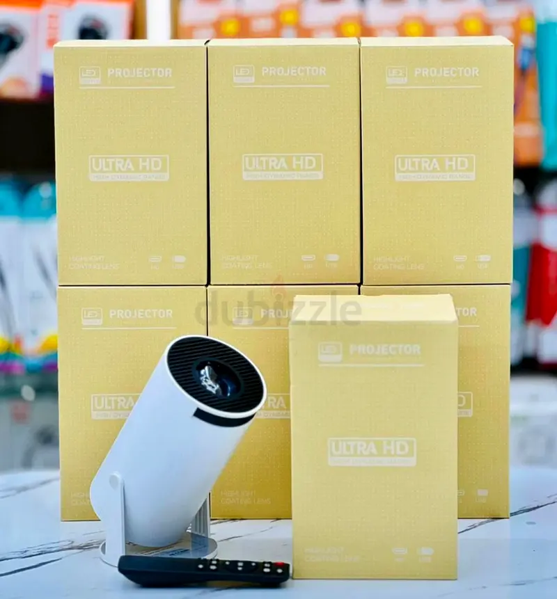 I'm selling a set of six portable mini LED projectors, all brand new and unopened in their original boxes. I bought these but never used them. Each unit is compact and lightweight, with a small remote included (shown in the photos). They support Ultra HD labeling on the packaging and are ideal for home movie nights, presentations, or portable movie setups. No warranty is included. Selling the full lot only.