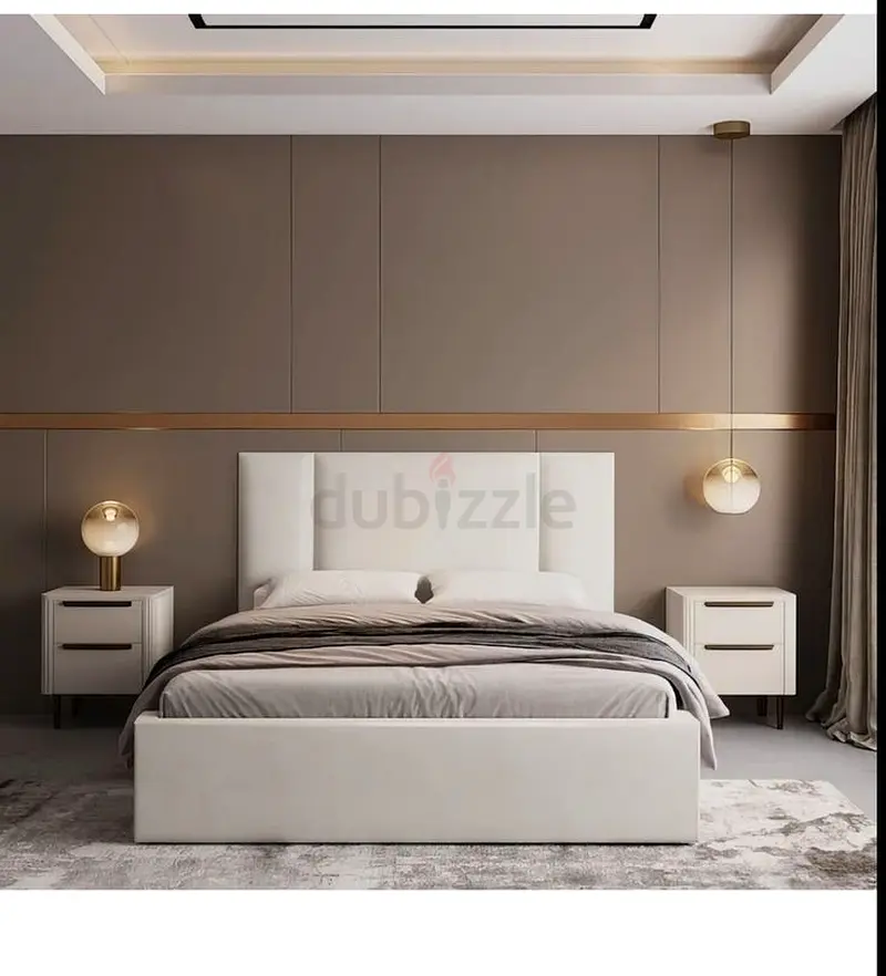 I'm selling this stylish modern bed that will transform your bedroom into a dream space. It's brand new and in flawless condition, having never been used. The elegant white design features a beautifully upholstered headboard that adds a touch of sophistication to any decor. This bed is perfect for anyone looking to upgrade their sleeping area with a fresh, sleek look. Don't miss out on this opportunity to own a beautiful centerpiece for your bedroom.