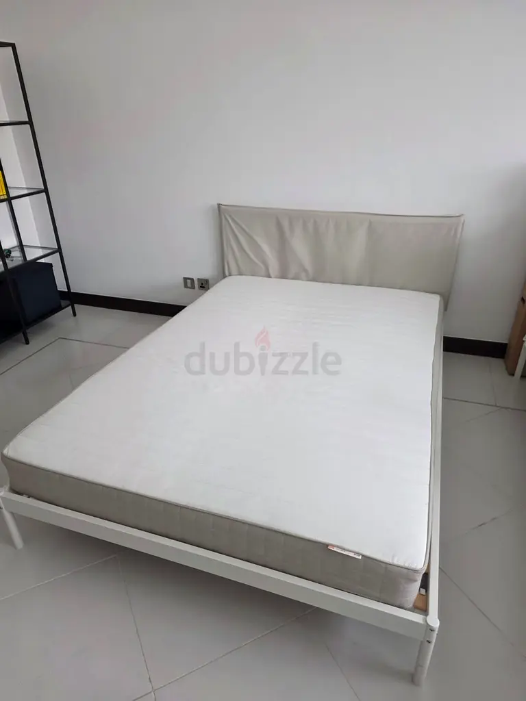 I'm selling two Ikea double beds with the mattress. Selling them individually. I bought it about 2 years ago and it's in excellent condition with very light usage — used only in a guest bedroom. The frame is white metal with a simple, clean design and a removable fabric headboard cover that matches the mattress border. The mattress is included, clean, and comfortable with no stains or sagging. Measurements fit a standard double. I can provide pickup from my apartment; mattress protector was used while owned.