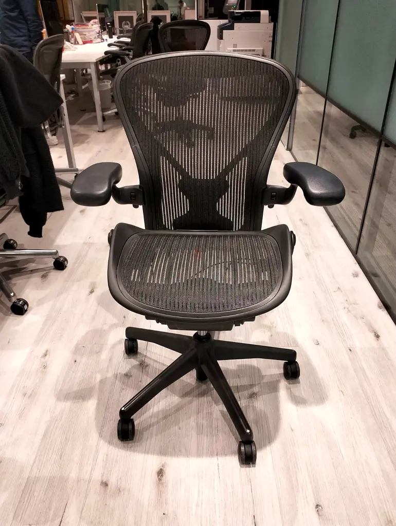 I'm selling a Herman Miller Aeron chair in excellent condition. This chair has been never used and looks as good as new. Its sleek black design and ergonomic features make it an ideal choice for any workspace or home office. I've taken great care of it, ensuring it remains in tip-top shape. Whether you're looking for comfort during those long hours at your desk or just a stylish piece to enhance your office aesthetic, this chair fits the bill perfectly.