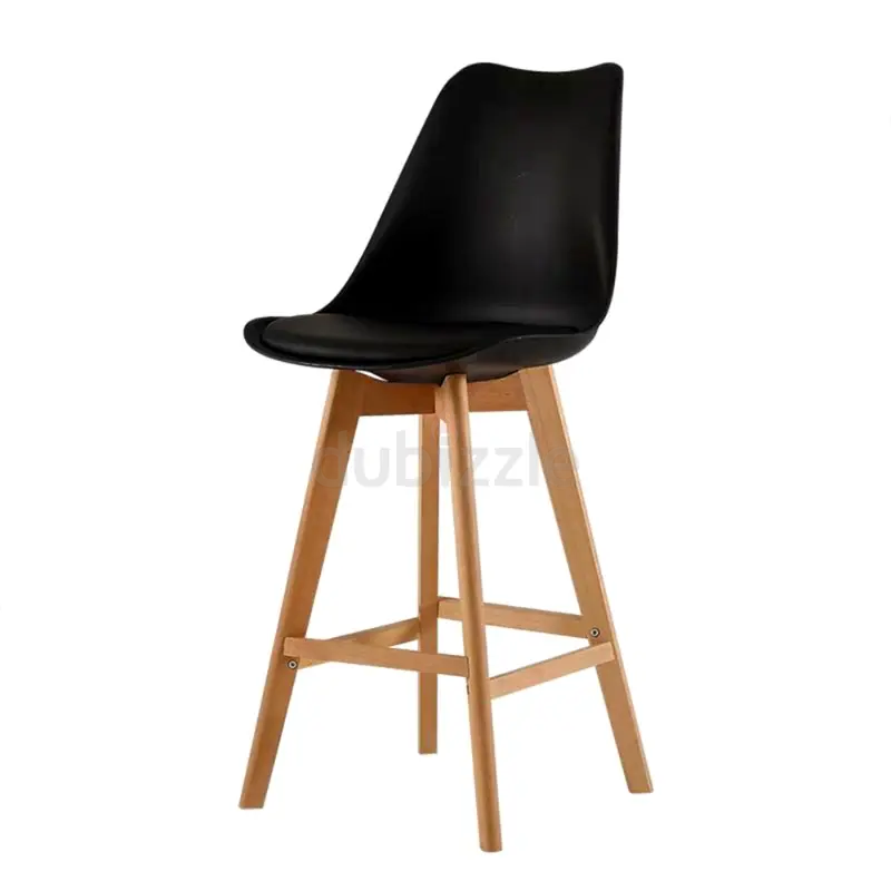 I'm selling a stylish black bar stool with wooden legs that's brand new and in flawless condition. This stool has never been used, making it a perfect addition to any home bar or kitchen area. Its sleek round shape and modern design complement various interior styles, making it both functional and aesthetic.