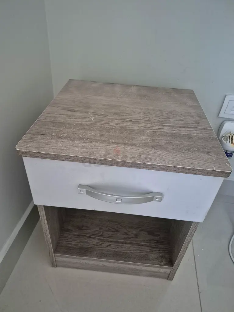 I am selling a pair of wooden bedside nightstands in a light oak (brown) finish from Home Center. They are about 2–5 years old and in good condition with normal signs of use, such as minor surface scratches and slight wear on edges but no structural damage. Each unit is rectangular in shape, has an open lower shelf and a single drawer with a silver handle for small-item storage. The design is simple and practical, suitable for most bedroom styles. Pickup in Dubai preferred.