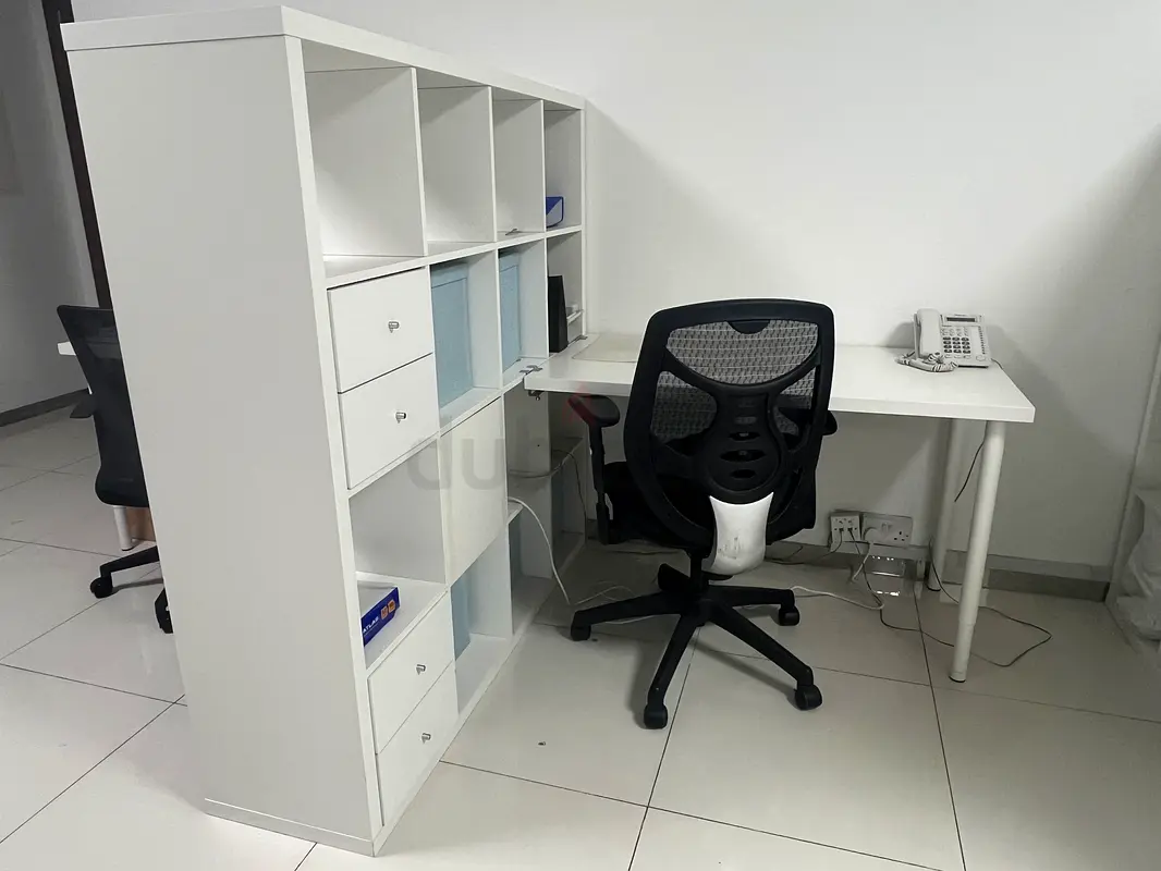 Spacious shelves + working desk in one