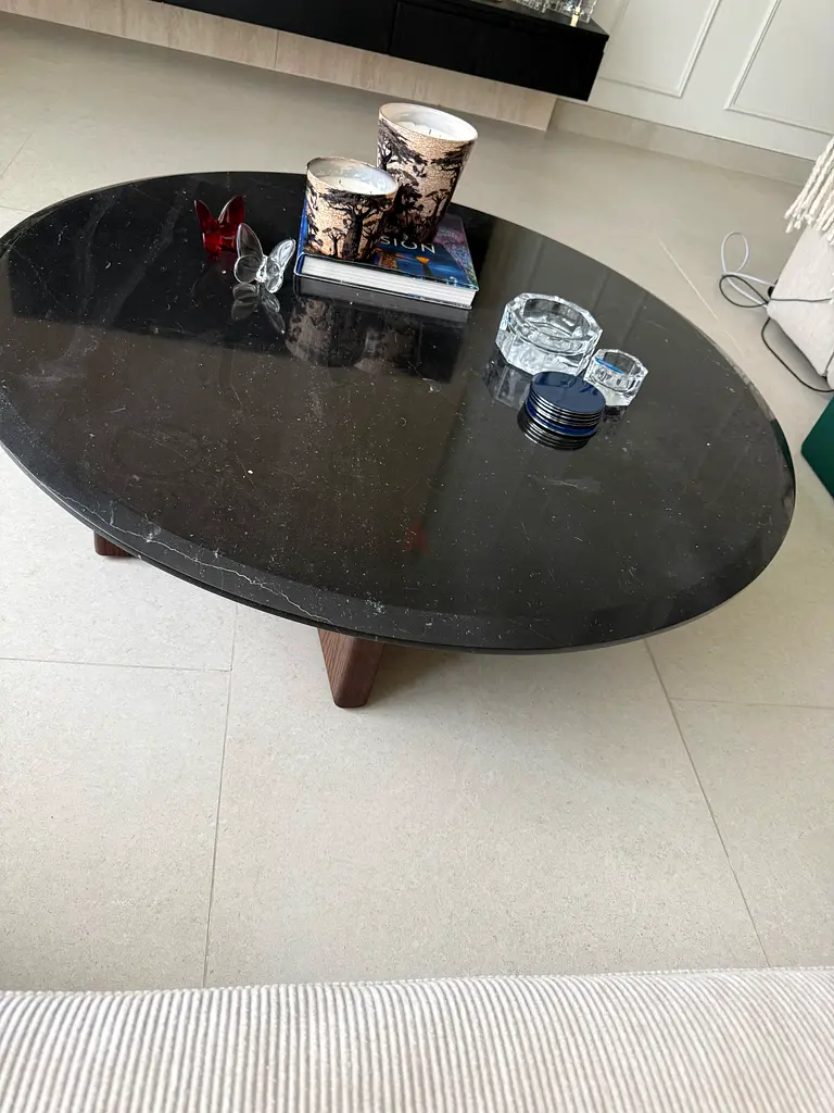 I'm selling my round black marble coffee table with wooden legs. It's brand new and it's in excellent condition. The polished black marble top has subtle veining and sits on sturdy wooden legs, giving it a clean modern look that fits well with most living rooms. No chips, cracks or stains — ready to use. Message me if you want more photos or to arrange pickup. Dimensions 110cm original price 5500
