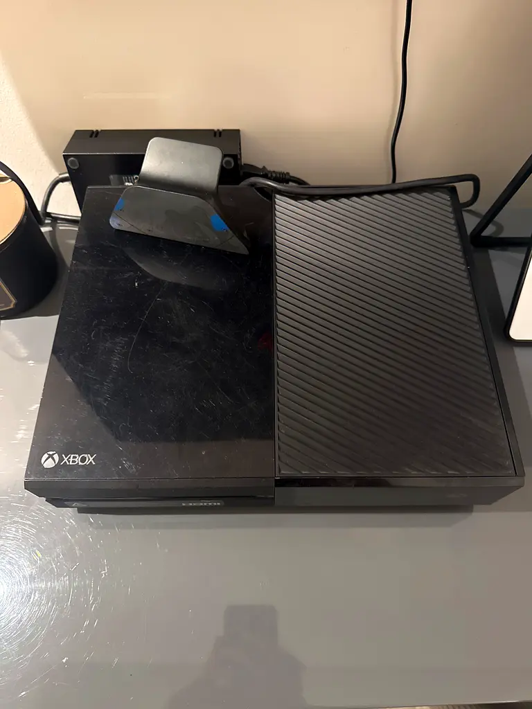 I'm selling my original Xbox One console. It's about 2–5 years old and has been used under normal conditions; the unit is in good working condition. This listing is for the gaming system only — along side a controller stand. Please check the photos for the cosmetic condition before buying.