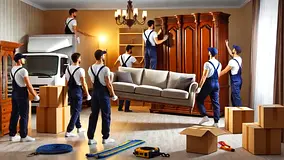 التغليف, مواد التغليف (صناديق، شريط لاصق، فقاعات بلاستيكية), فك التغليف, تفكيك وإعادة تركيب الأثاث