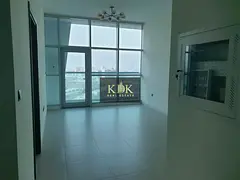 (JVC). The apartment features a bright living room with a beautiful open view and plenty of natural light, creating a comfortable and welcoming atmosphere.