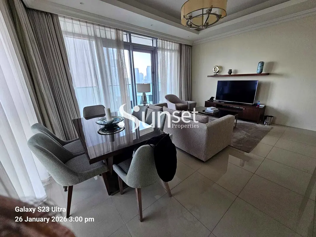 Sunset View Properties LLC is proud to present this exquisite fully furnished 2-bedroom apartment in the heart of Downtown Dubai. Elevated on a high floor, the residence offers breathtaking views of the iconic Dubai Fountain and the city’s glittering skyline, providing a serene yet dynamic living environment. The spacious layout is designed for modern luxury, blending comfort with style through premium finishes and expansive windows that flood the space with natural light.