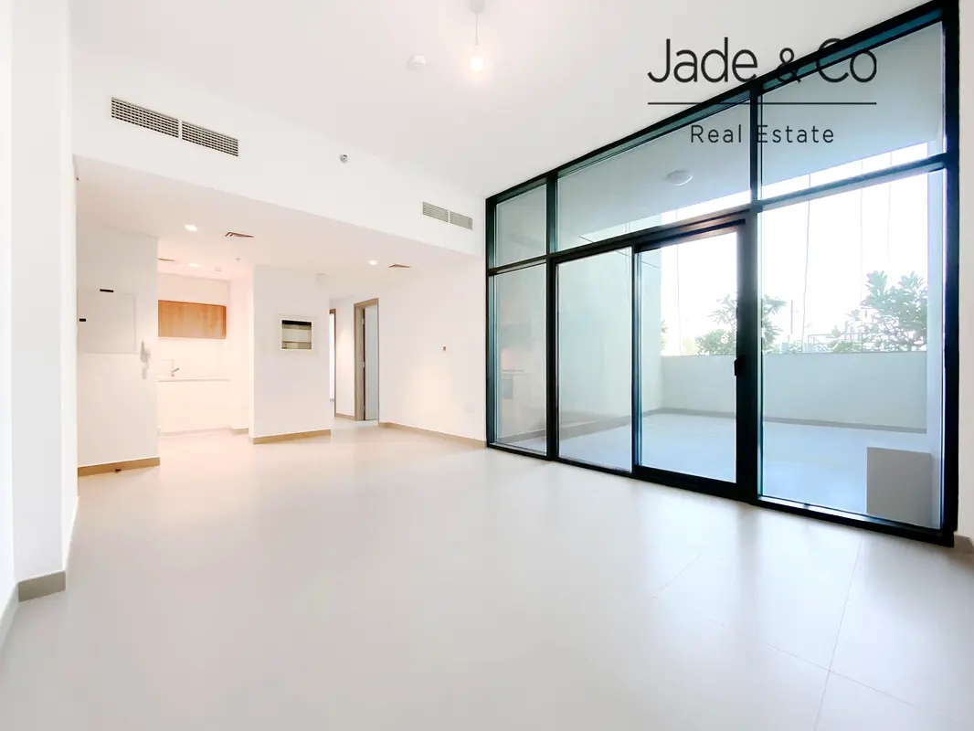 Jade & Co Real Estate is pleased to present this rare 2 bedroom apartment for rent in Prive Residence in Dubai Hills Estate, one of the most sought after addresses in Dubai. This podium level home features a unique layout with a large terrace surrounded by mature greenery, offering both privacy and a direct view of the amenities.