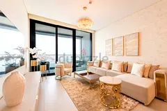 Every room and expansive atrium of this four bedroom apartment is full of personality and stunning views. You will be spoilt for space as this stunning house delivers two furnished living areas; one features an open-planned fully equipped kitchen and master dining area which acts as a great stage for entertaining. The other is furnished with an L-shaped sofa, lounge chair, coffee table, a large TV and access to the furnished balcony with spectacular views of Ain Dubai.