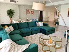 The bedrooms are thoughtfully designed with high quality furniture and bed settings also full private bathroom in each bedroom and in maid’s room, + 1 guest bathroom. The property features a fully equipped kitchen with all appliances ,modern bathrooms filled with toiletries and storage facilities. The living room is well put together with a modern twist and a classic look, with a large sofa, smart TV and dining area overseeing beautiful views of the city and sea view. You will discover an apartment with high-end luxury furniture and a contemporary design that creates an inviting atmosphere.