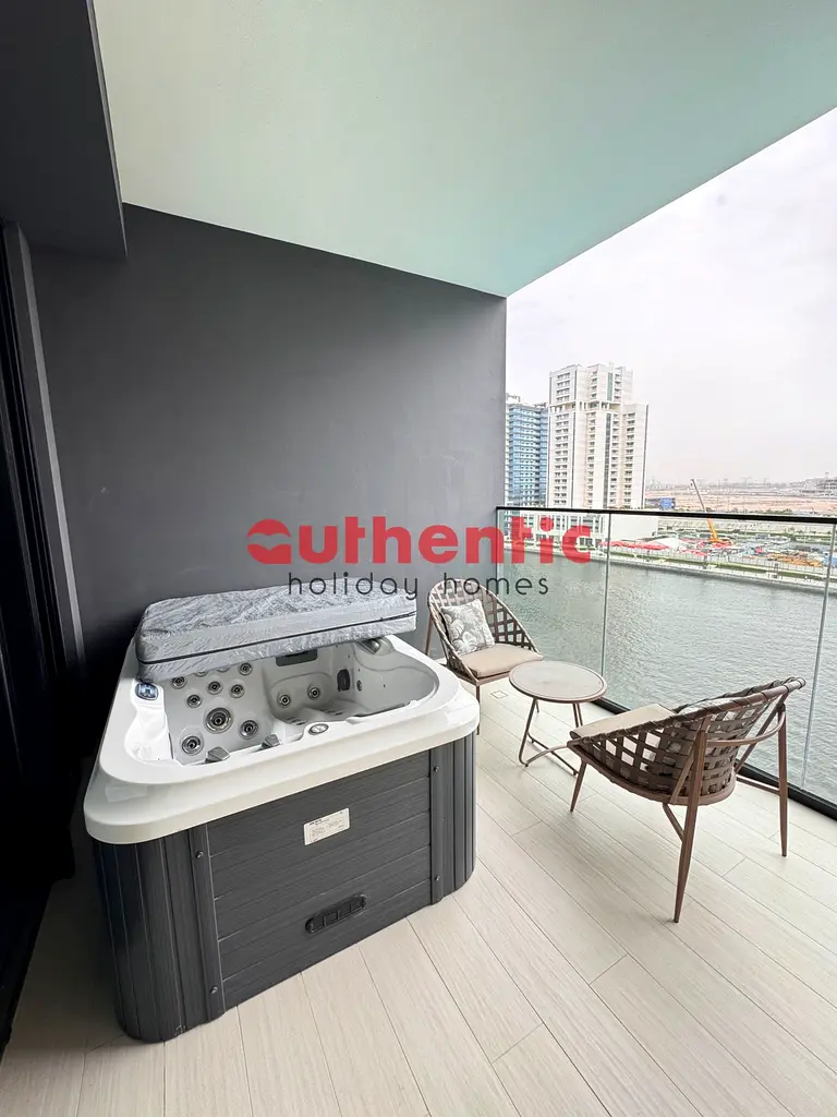 Amenities • Luxurious Studio apartment suite • Charming community and Burj Khalifa view from the spacious balcony • Private jacuzzi in the balcony • Fully equipped kitchen with quality appliances and utensils • Bathroom with shower • Access to swimming pool and gym • High-speed Wi-Fi