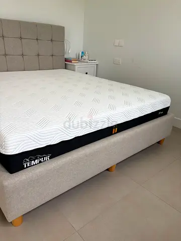 Queen-size upholstered bed frame with Tempur mattress - lightly used (price negotiable)