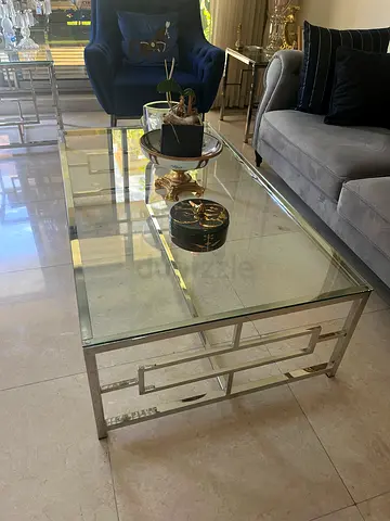 Modern Glass and Metal Coffee 2 Side Tables Set