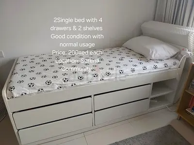 White single bed with 4 drawers and 2 shelves - good condition