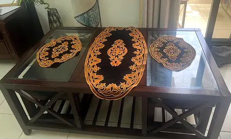 Glass-top Wooden Coffee Table - Dark Brown Frame