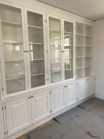 Built-in White Display Cabinet with Glass Doors and Lower Storage