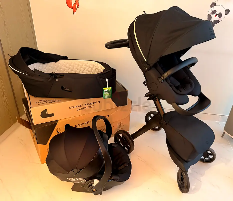 Asking price: 3900 AED, that includes stroller, bassinet (carry cot), car seat (carrier).