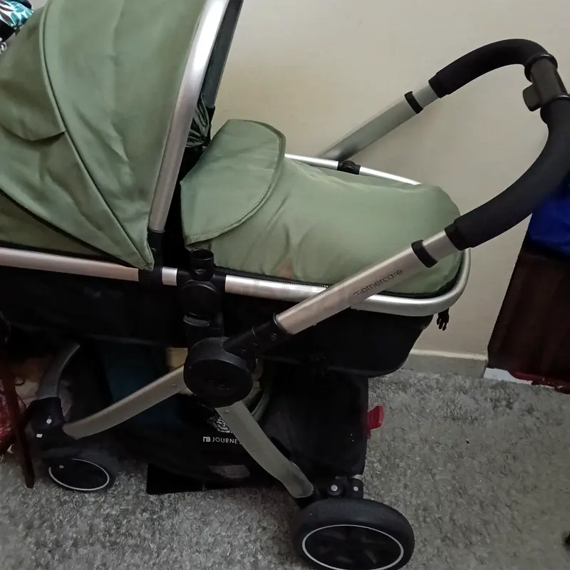 I'm selling my green Mothercare pram/stroller (Mamas & Papas style) — we used it lightly for the first few months and it's in flawless condition. It's about 1–6 months old and was used mainly for short walks, so the fabric and frame are clean with no stains or damage. The stroller includes a bassinet feature suitable for newborns, a reversible seat so baby can face inwards or outwards, an extended canopy for good sun coverage, a handy storage basket underneath, and multiple recline positions for feeding or sleeping. The wheels and brakes work smoothly and the handle is comfortable to hold. I'm only selling because my baby has outgrown it.
