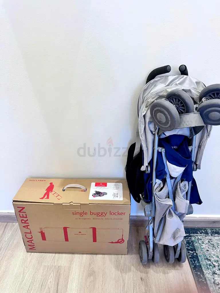 I'm selling my McLaren lightweight umbrella stroller with stroller travel bag and rain cover. It's been used for about 1-2 years and is in immaculate condition with light usage. It folds compactly with a one-hand fold mechanism and has a lightweight frame for easy travel. I’m including the stroller locker bag and a rain cover. The stroller offers an extended UV-protection canopy, multiple recline positions, a storage basket, all-terrain wheels with shock absorption, and cup holders. It's travel-system compatible and still performs well for day-to-day outings.