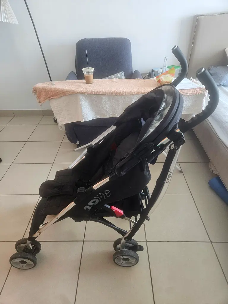 I’m selling a 3DLite Summer Infant lightweight umbrella stroller in black. I’ve used it for about 1–2 years and it’s in good condition with normal wear from regular use. The frame is lightweight and folds compactly with a one-hand fold mechanism, making it easy to store or take in the car. It has an extended canopy, multiple recline positions, a storage basket underneath, and travel system compatibility. The stroller features all-terrain wheels with basic shock absorption for smoother rides. Overall it’s clean, fully functional, and ready to use.