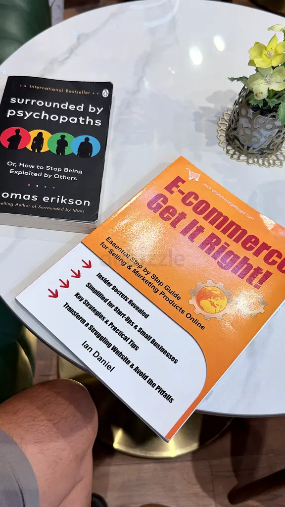 I’m selling two paperback business/self-help books in good condition that I bought a few months ago and barely used. The main book is “E-commerce: Get It Right!” — a practical step-by-step guide covering setting up online stores, marketing, product listings, and small-business strategies. Also included is “Surrounded by Psychopaths” by Thomas Erikson, which I kept for light reading. Both books show minimal wear: clean pages, intact spines, and no markings. Selling as a pair.