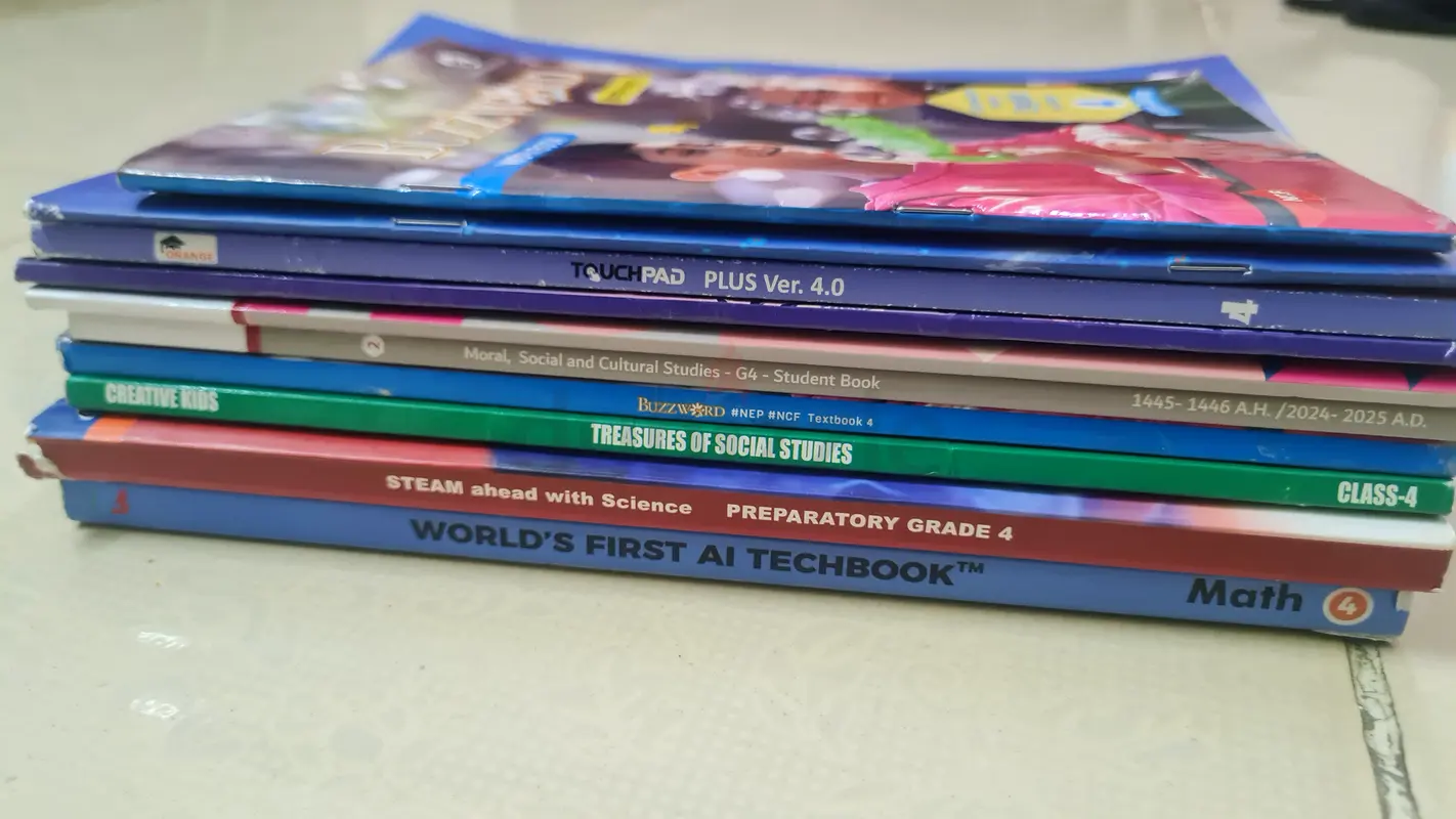 I'm selling a complete Gulf Indian High School Grade 4 primary school set of textbooks and workbooks. The set includes books for Math, English, Science, Social Studies, Malayalam and a few activity/workbook titles. All books are paperback and have been kept in excellent condition with light usage. They are about 1 years old and ready to use for the current school year.