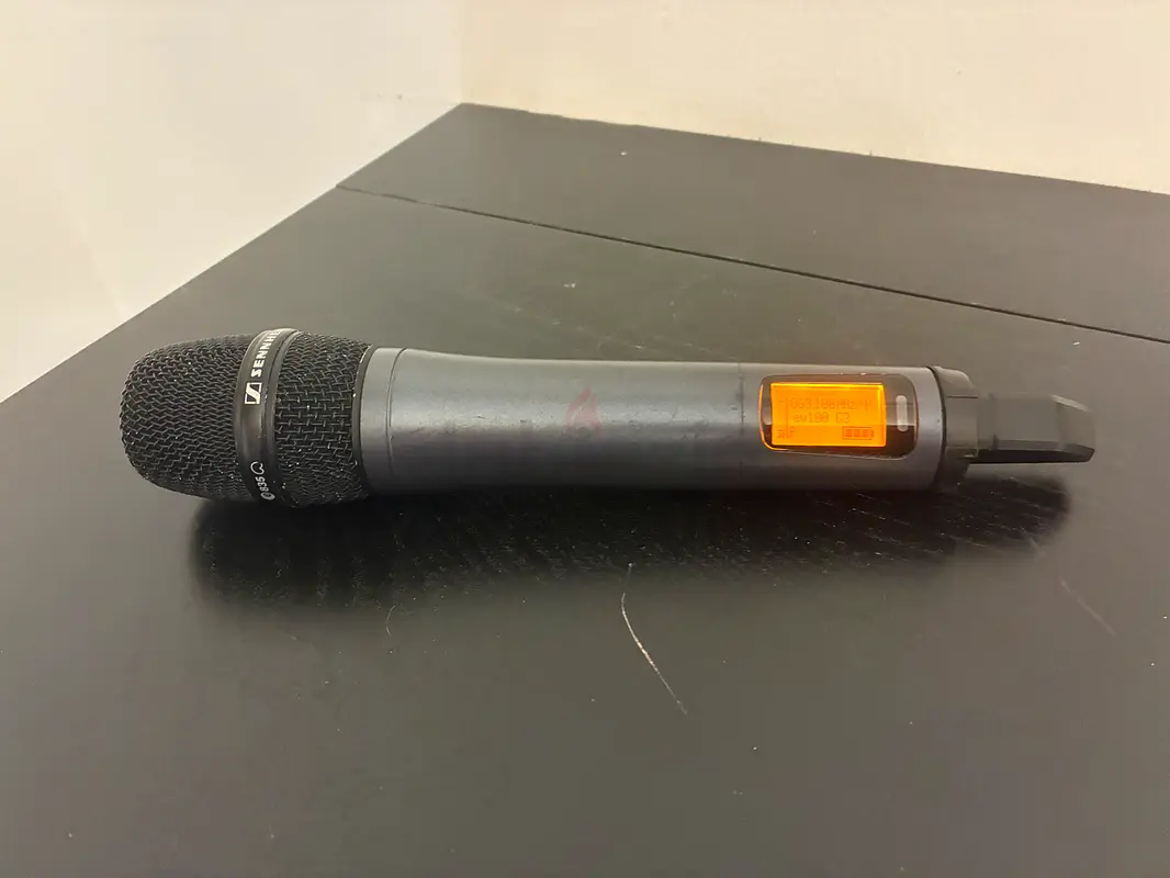 Vocal set for the 1.8 GHz band with a powerful, natural sound standing out even in a noisy stage environment: EW 100-G3 Wireless Handheld Mic System, dynamic cardioid stage microphone with true diversity receiver.