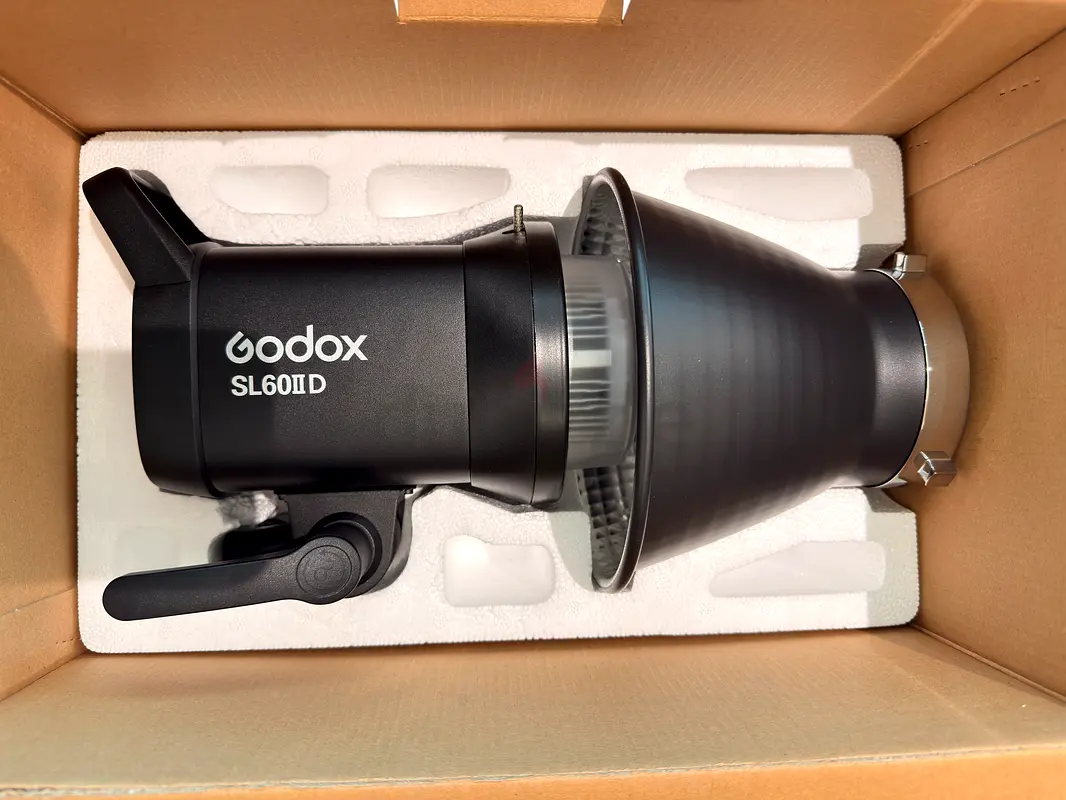 I'm selling my Godox SL60IID LED studio light (open box). I bought it recently and used it once for a small shoot — it's in flawless condition and works perfectly. The unit comes in its original box with protective styrofoam and the attached reflector as shown in the photos. No warranty applies. Selling because I no longer need it.