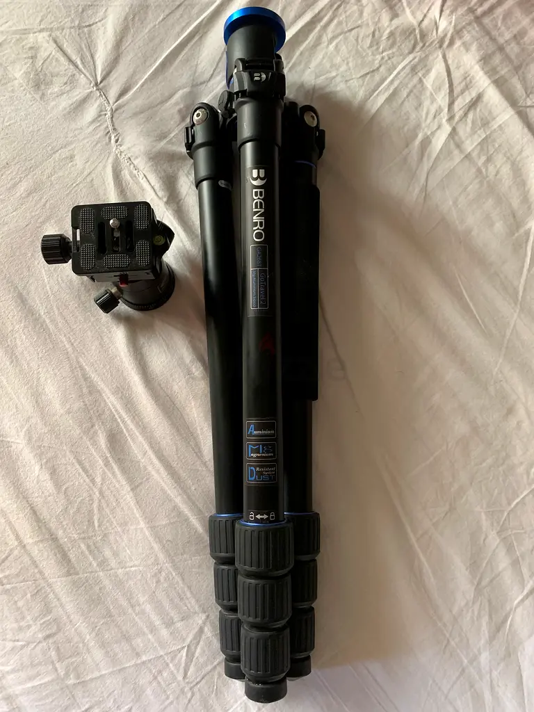 I'm selling my reliable benro camera tripod that has served me well for steady shots over the past couple of months. This tripod is in excellent condition and perfect for both amateur and professional photographers looking to enhance their shooting stability. Designed for ease of use, it features adjustable legs and a quick-release plate for convenience. Lightweight yet sturdy, it allows for seamless transport to all your photography locations. Whether you're capturing landscapes or portraits, this tripod will provide the support you need.