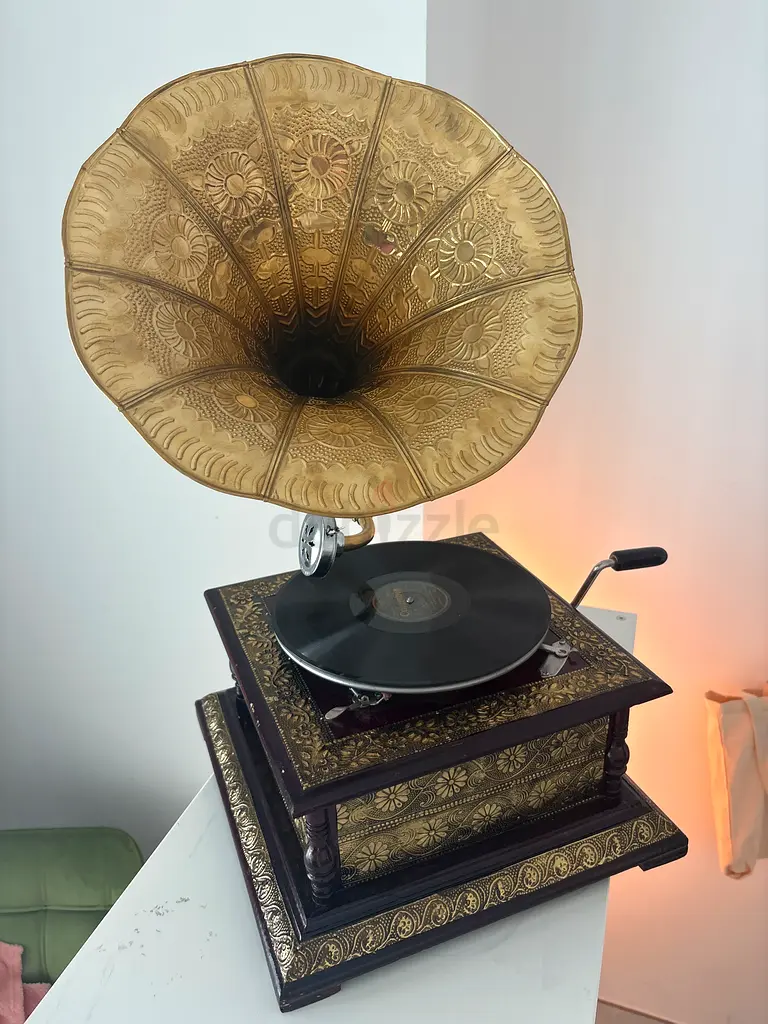 vintage hand-crank gramophone