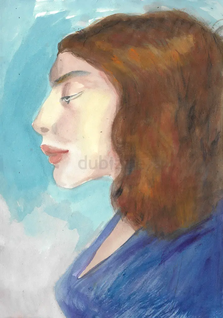 Captured in fluid watercolor, this original profile portrait explores a moment of quiet reflection. The soft, layered washes of the hair contrast beautifully with the cool, ethereal blue background, bringing a soulful and modern energy to any space.