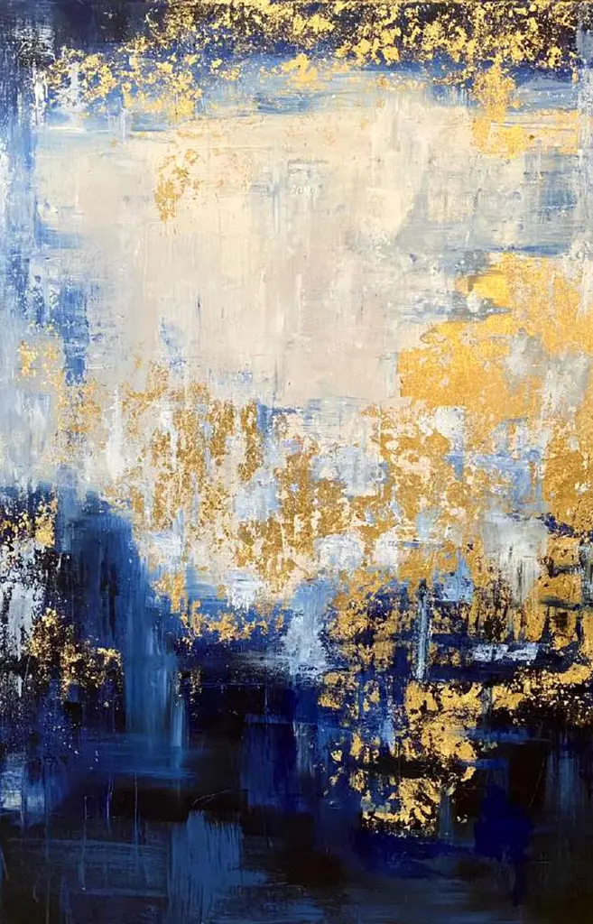 I'm offering a stunning mixed media painting titled 'Prosperity' created in 2021. This artwork measures 120 x 80 cm and features a beautiful blend of colors that evoke a sense of calm and optimism. The flawless condition reflects that it has never been used, making it perfect for collectors or anyone looking to enhance their space with a unique piece of art. The gold accents provide a luxurious touch, while the cool blues and whites harmonize beautifully, creating a focal point for any room. Don't miss out on the chance to own this exquisite painting!