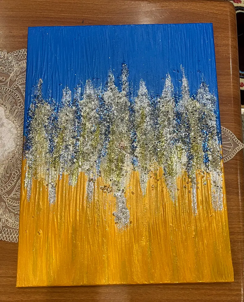 Hand painting- acrylics colors with stones and glitter