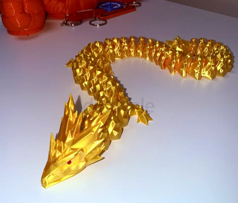 Product specifications: - Age: made to order - Condition: Excellent - Usage: New - Material: PLA (gold-colored) - Type: Golden dragon sculpture - Suitable for: Display/collectible - Length: 40 cm (can be customised)