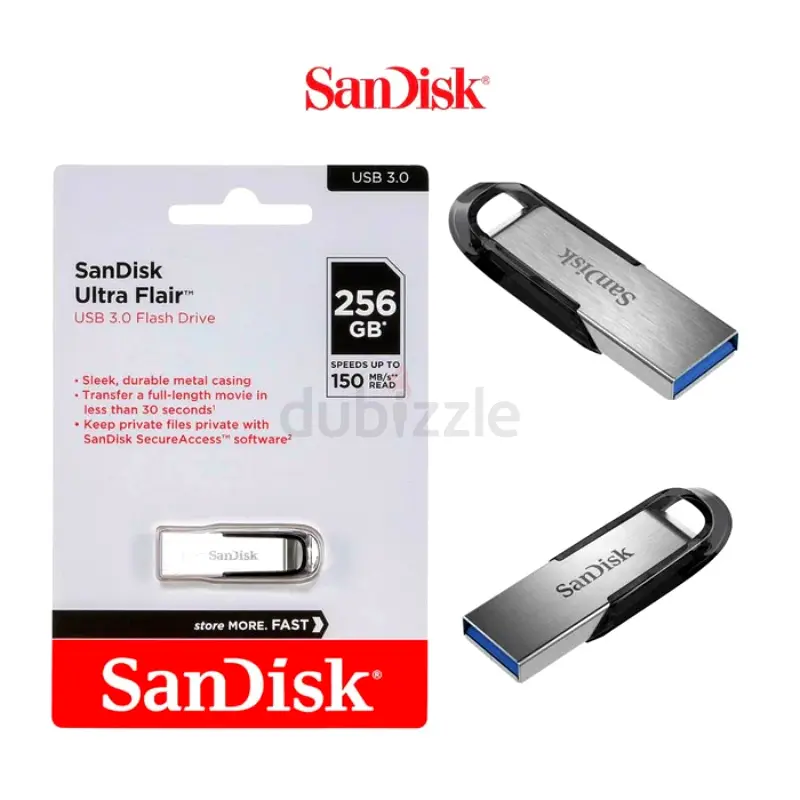 I am selling a SanDisk Ultra Flair 256GB USB 3.0 flash drive with a sleek metal casing. It's brand new, never used, and in flawless condition — comes without warranty. The drive supports USB 3.0 speeds (up to 150 MB/s read as advertised) and is backward compatible with USB 2.0. The compact metal design is durable and has a built-in loop for keychain attachment. Ideal for fast file transfers and portable storage.