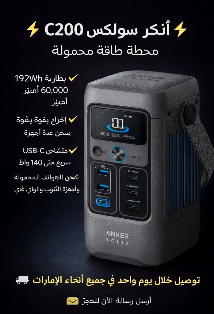 I am selling the Anker Solix C200 Portable Power Station. This device is brand new and has never been used; it is in flawless condition and comes with a warranty. It's perfect for camping trips, emergencies, or keeping your devices charged on the go. The power station features a large 192Wh battery with 60,000mAh capacity and supports multiple charging options including USB-C and AC outlets. It also includes an easy-to-read display for monitoring battery levels.