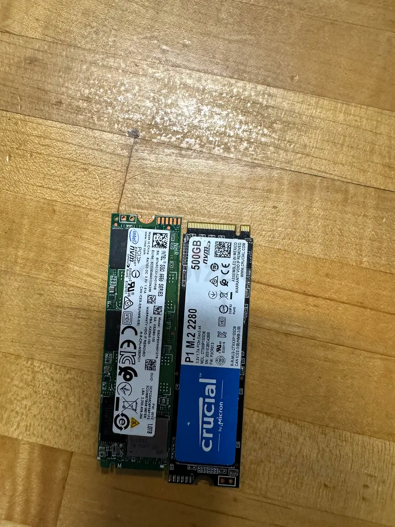I’m selling two M.2 NVMe SSDs that I used in my laptop for light everyday tasks. Both are in excellent working condition and about 6–12 months old. One is a Crucial P1 500GB (M.2 NVMe) and the other is a Intel 1TB M.2 NVMe (model shown in photos). No warranty remains. I used them lightly — mainly for OS and everyday files — and they’ve been working reliably with no issues. I’m including the drives as-is; they’ve been wiped and are ready for installation.
