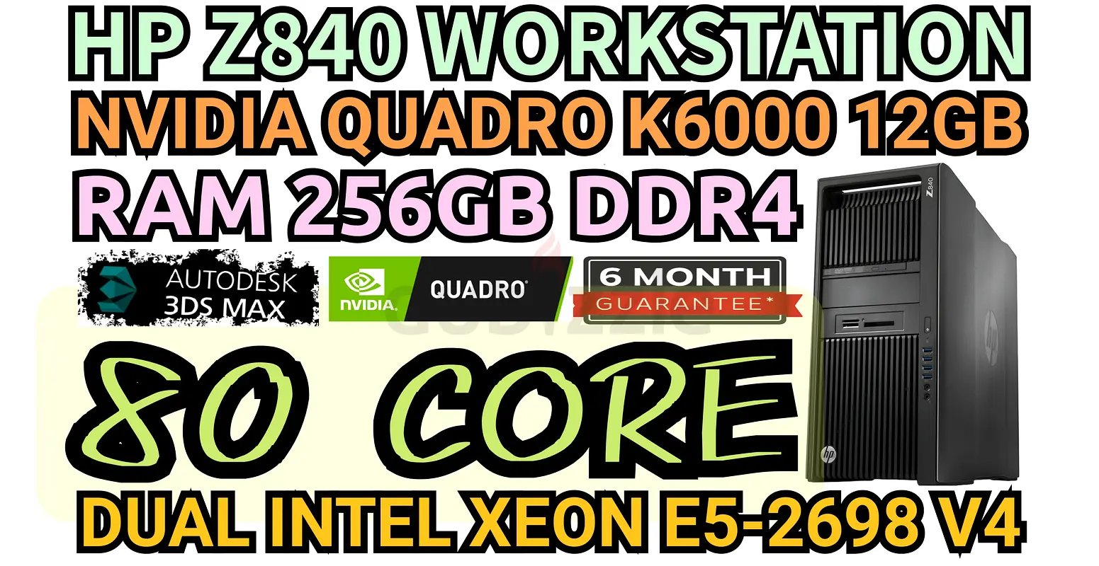 HP Z840 WORKSTATION NVIDIA QUADRO K6000 12GB DDR5 RAM 256GB DDR4 80 CORE DUAL INTEL XEON E5-2698 V4