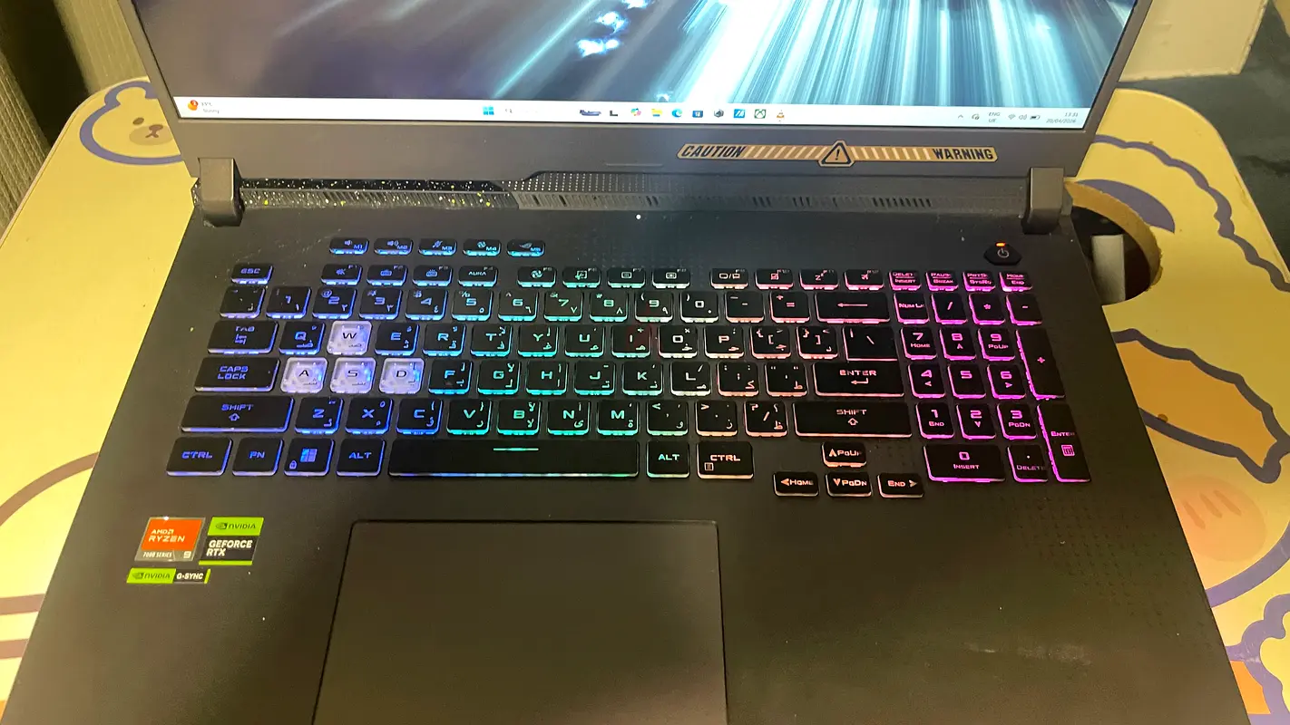 I'm selling my Asus ROG Strix G17 laptop, bought about 1–2 years ago. It's in good condition with normal everyday use — the keyboard RGB works fine and the screen is clear with Full HD 1920 x 1080 resolution. Specs include an AMD Ryzen 9 processor, 16 GB RAM, and a 750–999 GB hard drive. No warranty remaining. Battery and ports are working as expected; there are minor surface marks from regular use but nothing affecting performance.