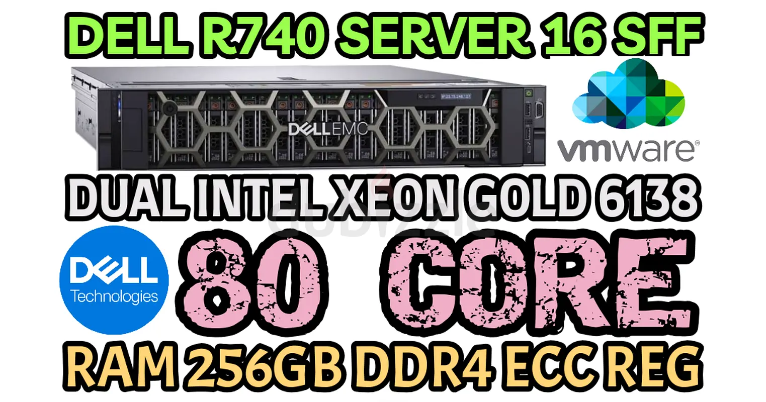80 CORE DELL R740 SERVER 16 SFF RAM 256GB DDR4 2 INTEL XEON GOLD 6138 HARD DRIVE 7TB SAS 10K