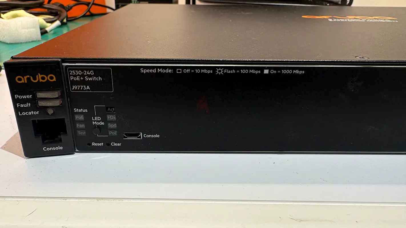 I’m selling my Aruba (HP) J9773A 2530-24G PoE+ switch. I bought it about 2–5 years ago and it’s in excellent condition. It’s fully functional and has been used under normal office conditions. The switch provides 24 Gigabit ports with PoE+ support, suitable for powering access points and IP phones. No warranty applies. I’m including the unit as shown; console cable and mounting accessories aren’t guaranteed unless requested.
