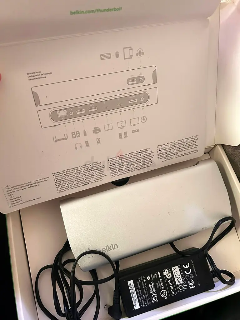 - Includes: Belkin Thunderbolt Dock, power adapter, original box