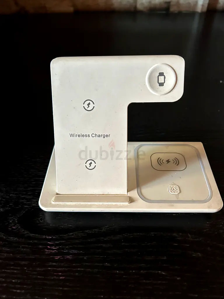 I'm selling my Wireless Qi Charging Stand — a 3-in-1 wireless charger I bought about 1-6 months ago. It's in flawless condition and has only seen light usage. Warranty does not apply. It charges Qi-compatible phones on the stand, wireless earbuds on the flat pad, and a smartwatch on the circular pad (compatibility depends on your device). Item is sold as shown in the photos.