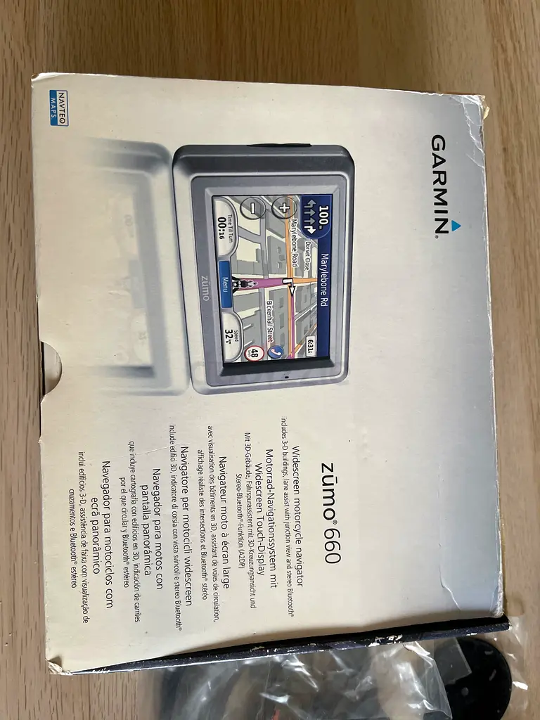 I’m selling my Garmin Zumo 660 motorcycle GPS navigator. I bought it about 5–10 years ago and have used it lightly. It’s in excellent working condition — powers on, the touchscreen responds, and it still locks onto satellites and guides routes. The unit comes with the original box and mounting hardware (see photos). There is some minor wear on the box and cables from storage, but the device itself shows minimal signs of use. No warranty is included.