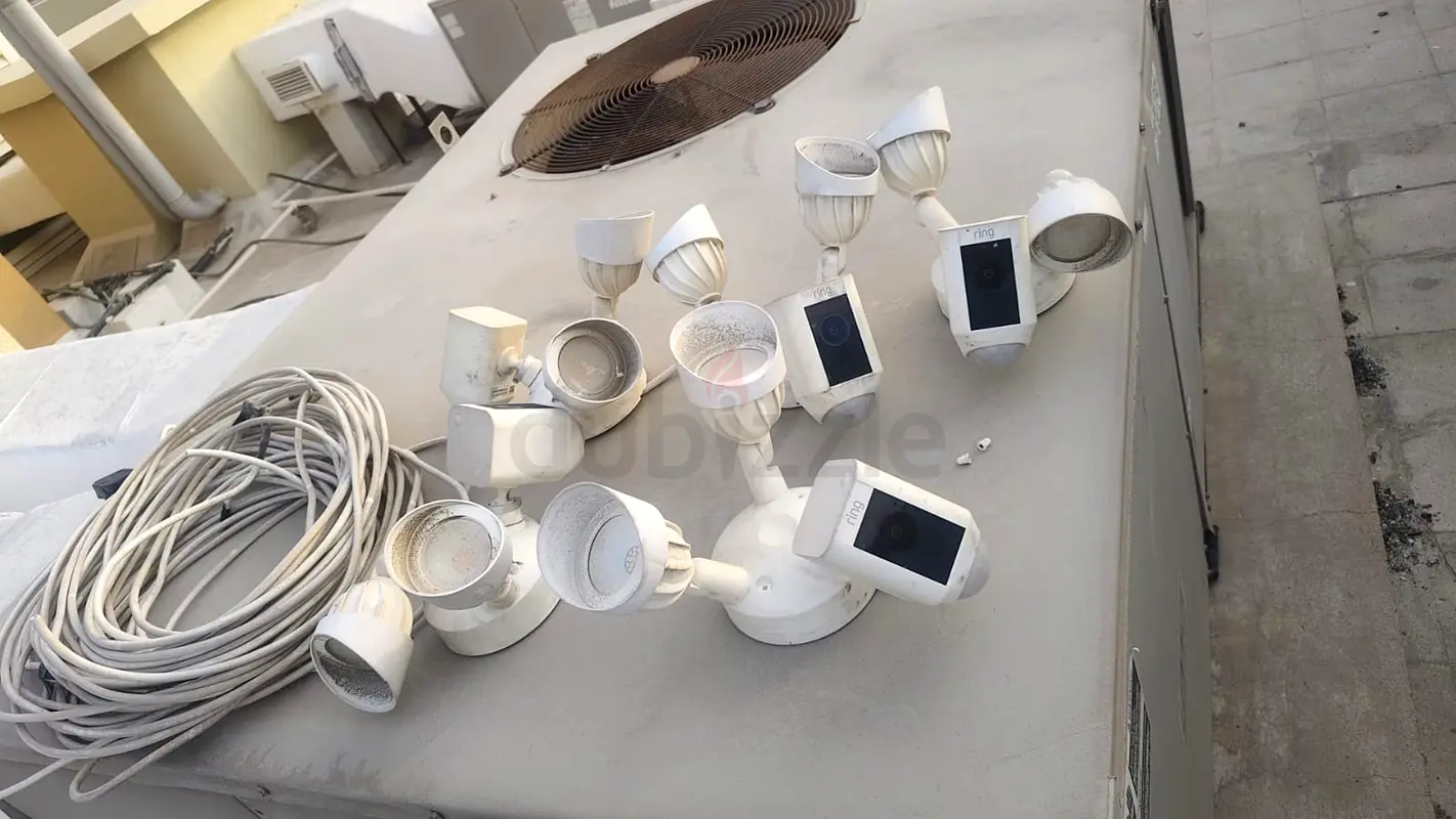 Selling a complete Ring security camera system including 8 cameras, wiring, and mounts. Perfect for home, villa, office, or warehouse security.