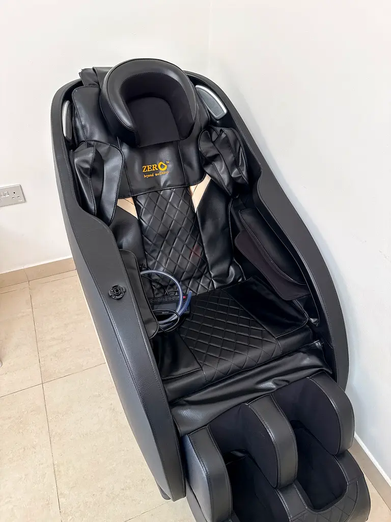 I'm selling my full-body electric massage chair in black. It's about 1-2 years old and has been used only once, so it's in flawless condition. The chair has a full reclining design with padded head and leg supports, multiple airbag sections for arms and calves, and a quilted leather-like seat surface. All controls and motors work perfectly and there are no scratches, stains, or signs of wear. Comes from a smoke-free home and is ready to use — just plug in and enjoy. Ideal for home relaxation or a personal wellness corner.
